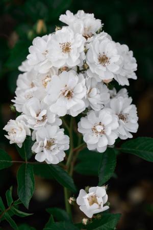Этот современный сорт обладает шармом старинных роз. Он быстро стал популярен в северной Европе, где ведет себя как крупный куст или невысокая плетистая роза. Полумахровые цветки чистого белого цвета, с лепестками разного размера и формы, которые к тому же закручиваются, благодаря чему розу не перепутаешь с другим сортом. Сорт очень мощный, выпускает кисти до 80 цветков, так что во время цветения растение усыпано цветками сверху донизу. В отличие от многих рамблеров, цветет повторно.