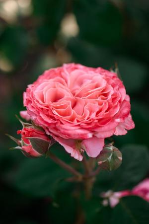 Куст очень мощный с крупной матовой листвой.Цветы расположены и в соцветиях и одиночно. Цвет розово-коралловый.Запах средний.Не боится дождей, устойчива к болезням.