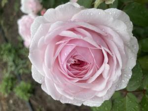 Красивая махровая роза нежной окраски. Куст густой, округлой формы, во время цветения весь покрытый цветками. Куст хорошо разрастается, обильно цветёт. Чудесного, теплого, нежно-розового цвета.Цвет немного темнее в центре цветка, где тени между лепестками придают цветку более насыщенный розовый оттенок. Насыщенный конфетный аромат. Это сильный, устойчивый к заболеваниям сорт, достаточно быстро растущий куст. Появляются иногда по одному, но обычно в кистях, ветви поникают под их тяжестью.