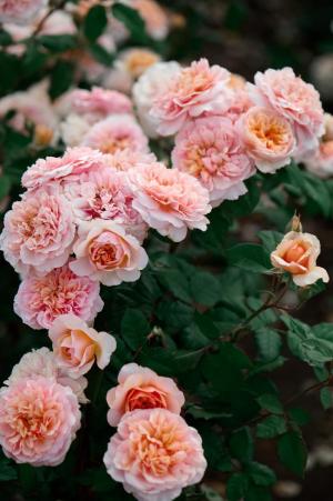 Цвет лососево-розовый. Умеренный аромат аниса, абрикосов или персика, цитрусовых и ванили. Цветки густомахровые (более 41 лепестков), чашевидные, взъерошенной формы. Цветет в течение всего сезона.