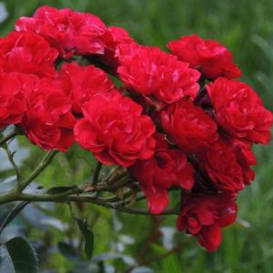 Цветки красные с темно-розовым оттенком, махровые, с легким ароматом. Розетковидные цветки очень мелкие, собраны в крупные кисти и появляются в течение всего лета и осенью. Куст раскидистый.