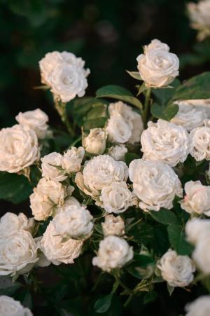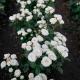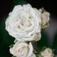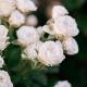 Белые цветки с умеренным ароматом из 45-50 лепестков, в небольших соцветиях.
